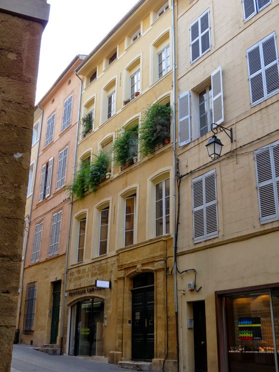 Na końcu Rue Espariat zapuszczam się w labirynt wąskich, często brukowanych uliczek, małych placyków, zaułków... Rano, uliczki są już posprzątane a nawet wymyte... O poranku jeszcze czuć rześkie powietrze... W wąskich uliczkach unosi się zapach pieczonych bagietek, croissantów, bułeczek, obwarzanków... Dochodzę do najstarszego w mieście Placu, Richelme... Tutaj w cieniu ogromnych platanów we wtorek, czwartek i sobotę rozkłada się warzywno-owocowo-kwiatowy targ...