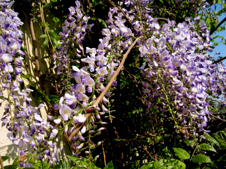 Esas glicinas en flor en color púrpura son los colgantes que embellecen tu rincón del que puedes disfrutar cada día en tus paseos.