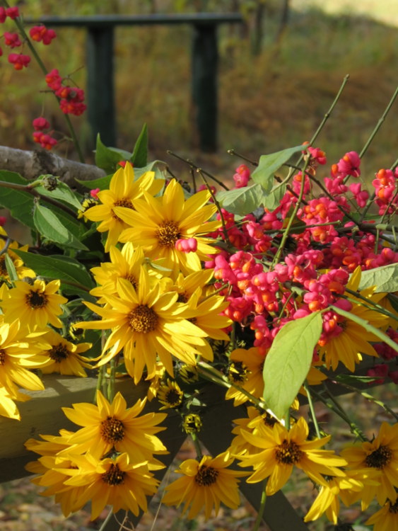 OdpowiedzUsuńLusiu zjawiskowy ten jesienny bukiet.czy to nie kwaty topinambura?