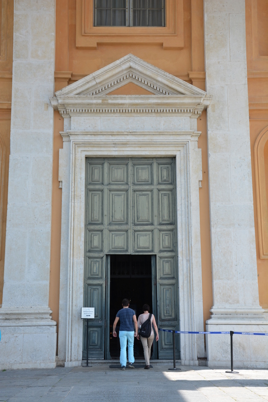 Bazylika wygląda niczym Panteon w Rzymie... Po obu stronach świątyni są dwie wieże z dzwonnicami... Portyk wspierany przez osiem kolumn korynckich wprowadza mnie do środka... Bazylika jest okrągła i urzeka pięknem... W świątyni jest dosyć jasno... Światło wpada przez okna i lunety... Wnętrze zdobi sześć kaplic... Są liczne rzeźby wykonane z marmuru z Carrary... W ołtarzu głównym zaś rzeźba Zwiastowanie...