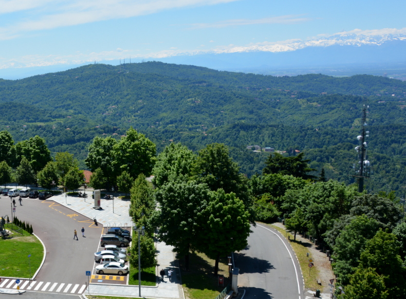 Mnie też zachwycił Ołtarz Główny. Wiem, że nasza uwaga nie powinna skupiać się na nim ale na Liturgii Eucharystii. I jak każdy ołtarz, jest budowany dla ofiary i tylko dla ofiary. Jednak moje zwiedzanie, poznawanie świątyń nigdy nie odbywa się w czasie Mszy świętej. Przyznaję, że widok na Turyn i na ośnieżone Alpy jest bardzo piękny.