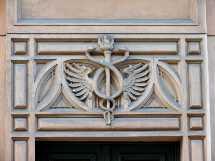 UsuńKerykejon, kaduceusz, symbol handlu i pokoju, i na tych drzwiach przedstawiony jest w formie prostego kija z 2 oplatającymi go wężami i zakończona parą skrzydeł. Jak zaczarowana stałam przed tymi drzwiami. Zrobiłam kilka zdjęć bo odbicia w szybach wywołały moją fascynację.