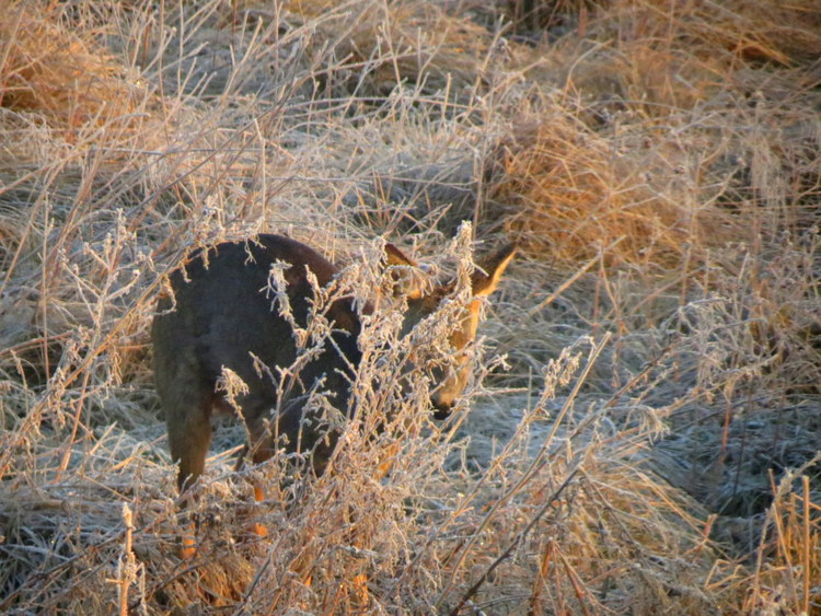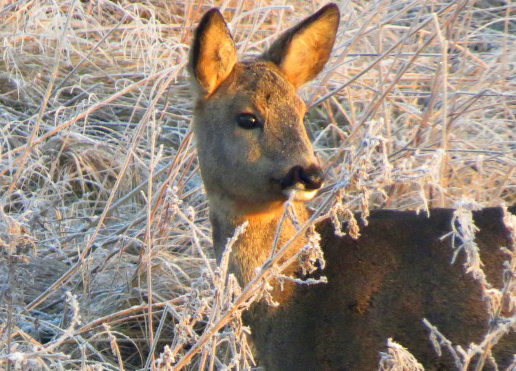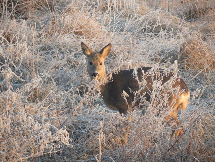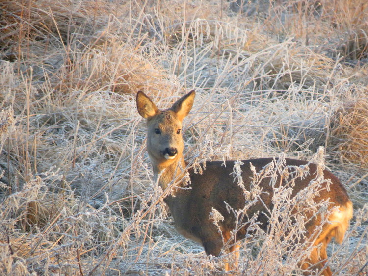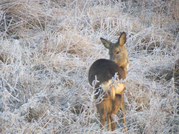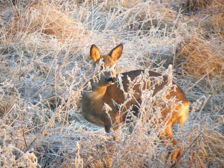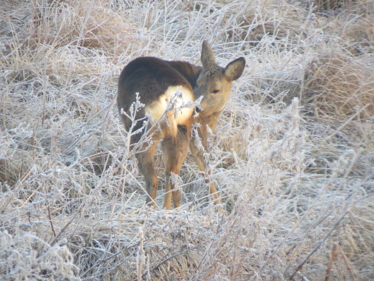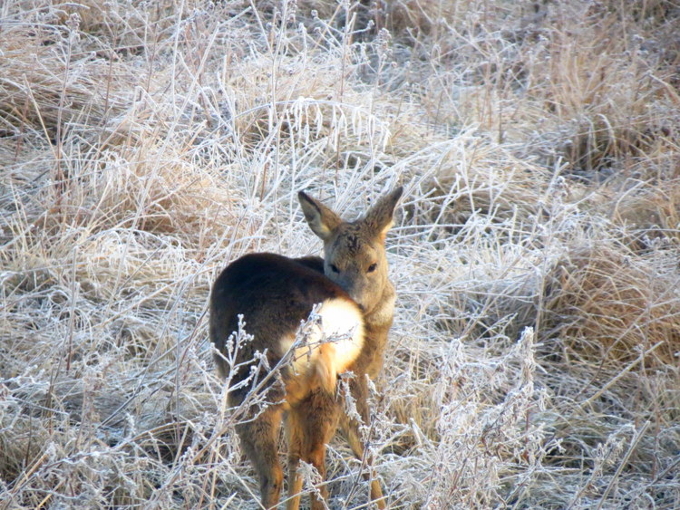 What a beautiful deer in frosted grass!