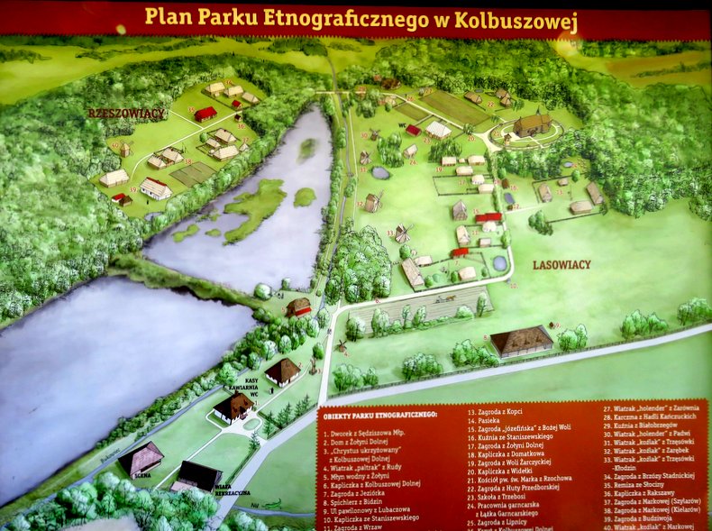 Park Etnograficzny został otwarty 1978 roku ale pomysł na jego utworzenie powstał przed 1970 rokiem wśród działaczy Muzeum Regionalnego Lasowiaków w Kolbuszowej... Obok zagród mogłam podziwiać wiatraki, chlewiki, kurniki, kuźnie, budynek szkolny, karczmę żydowską, pasiekę, remizę, młyn wodny... To wszystko jest w otoczeniu i relacjach możliwie bliskich niegdysiejszej rzeczywistości... Za Norwidem pragnę powtórzyć: