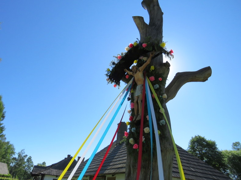 Co mi się tutaj jeszcze bardzo spodobało? dni oktawy Bożego Ciała miały tutaj świąteczny charakter... Wszystkie kapliczki i krzyże były pięknie przystrojone... Na ścianach, przy drzwiach lub w komorze wisiały wianki z ziół i kwiatów... Kto dzisiaj pamięta, że na polskiej wsi wianki święcone w oktawę Bożego Ciała... Wiele osób nie wie, że taki zwyczaj do tej pory się zachował... Poświęcone używano do wielu celów związanych z lecznictwem, hodowlą, uprawa ziemi...Kruszono je do ziarna zbóż przed siewem oraz worków z ziemniakami przed sadzeniem aby zapewnić lepszy urodzaj...