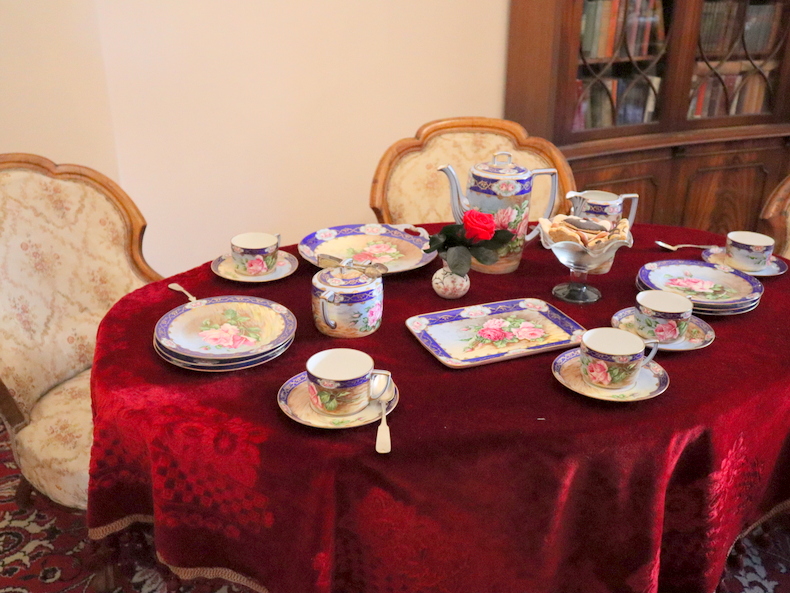 Chodząc po poszczególnych komnatach nie mogę wyjść z podziwu jak doskonale poradzono sobie z rekonstrukcją nie tylko zamku ale i jego wnętrz... Na dziewiętnastowiecznych meblach cieszą oko przeróżne bibeloty, piękne zabytkowe szkło... Zachwycam się misternie zdobioną, bardzo delikatną porcelaną... Każdy prezentowany egzemplarz niesie ze sobą kawałek historii i jak nie podziwiać tych pięknych eksponatów...