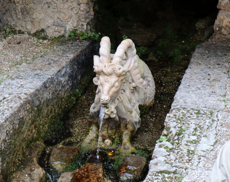 Idąc dalej mijamy Fontannę Diany... We wnęce posąg bogini polowań... W niskiej grocie tufowej koziorożec, a w kolejnej niszy oglądamy szczęśliwą świnię - matkę z dwoma prosiętami...