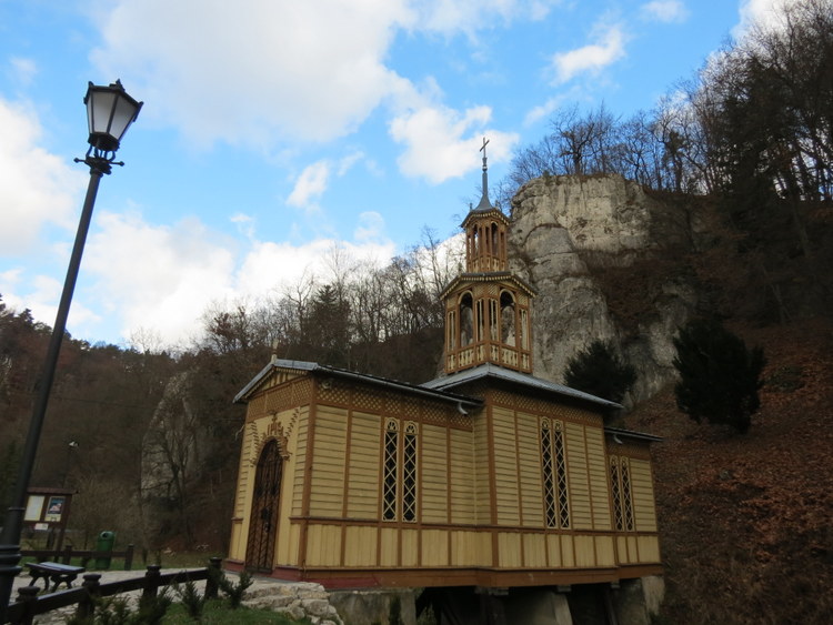 Z przyjemnością wędrujemy wzdłuż doliny, podziwiając malownicze widoki... Brakuje jednak pełnego słońca... Przekonałam się, że Park Ojcowski najlepiej podziwiać w słoneczne dni... Spacerujemy po Parku Zamkowym... Na moment zatrzymujemy się przy kapliczce z figurą św. Jana Kantego, która stoi u stóp ojcowskiego zamku...