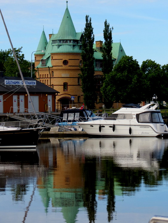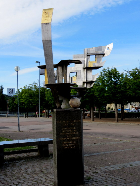Uddevalla prawa miejskie uzyskała w 1498 roku... Często przeżywała oblężenia... Historycznie była częścią Norwegii... Jednak w XVII wieku została przekazana Szwecji... W mieście znajdowała się renomowana stocznia... Założył ją Gustaw Thorden wielki armator... Recesja w latach 70 - tych XX wieku doprowadziła do jej zamknięcia w 1985 roku... Obecnie jest tutaj niewielki port rybacki... Spacerując, mijam kilka ciekawych pomników; jeden poświęcony żołnierzowi RAF-u, inny Gustawowi Thorden'owi... Zaciekawił mnie budynek z cegły klinkierowej, to Bohusläm Museum, czyli muzeum ze sztuką współczesną... Niestety, na zwiedzanie nie mieliśmy czasu... Może i dobrze, że  o tej porze jest jeszcze zamknięty...