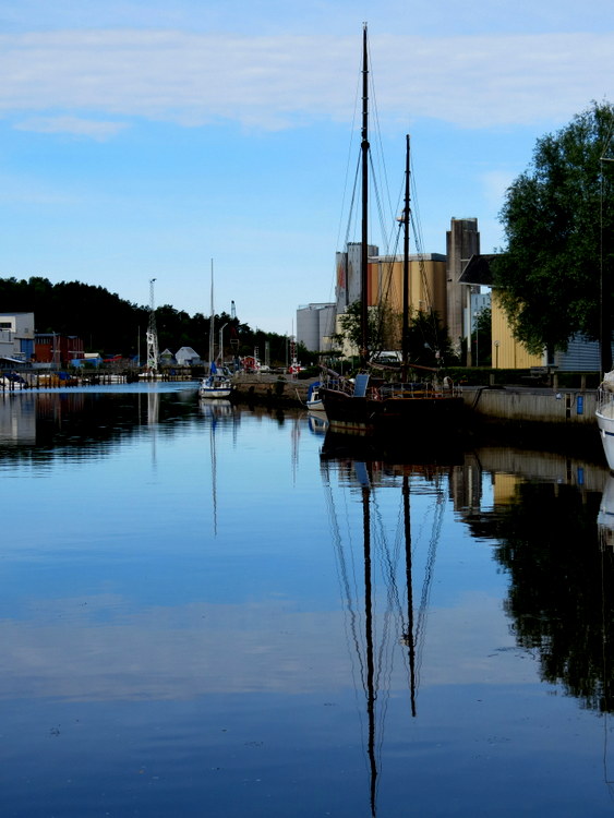 Uddevalla  położona jest nad zatoką Skagerrak... Połączona jest z morzem długim, wąskim fiordem... Promenada świeci pustkami... Tylko nas dwoje i nikogo więcej... Stoimy przy nabrzeżu, stąd rozciąga się wspaniały widok w głąb zatoki... W ten lipcowy poranek słońce delikatnie przygrzewa... Na spokojnych wodach zatoki zacumowały białe jachty, kutry, łodzie...